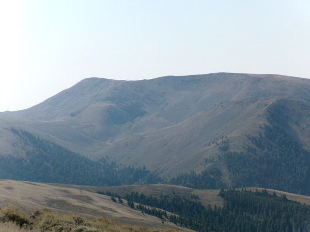 Blizzard Mountain as viewed from US-20 to its southeast. The summit is just right of center. Livingston Douglas Photo