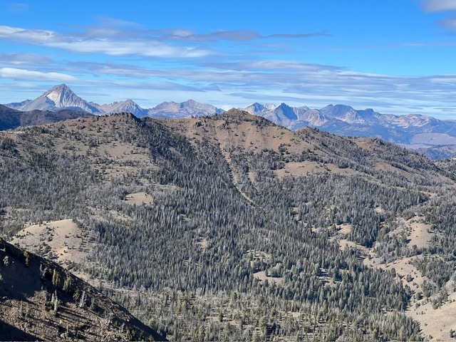 The benefit of the Peakbagger algorithm is it can more easily take in the bigger picture and include possibilities overlooked by a human analyst. These two new 10ers illustrate different ways that can occur. For Peak 10036, I had analyzed this peak last month and found it to have a 289-foot rise. What I hadn’t noticed was that along the lengthy ridge that connected it to higher peaks, there was another key col candidate that turns out is substantially lower, resulting in 319 feet of prominence. For Peak 10965, the LiDAR elevation has actually been available for two years.