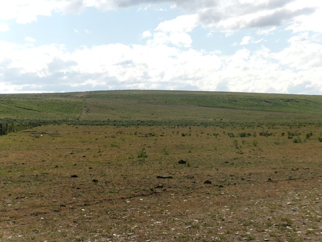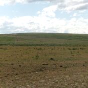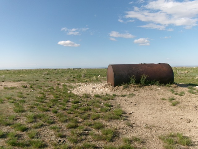 From the cattle gate, follow a fence row that heads due west up the east face. Use cattle trails initially then an old 2-track road (shown as a “jeep trail” on the USGS topo map) to reach the southeast side of the summit cap. Leave the road and bushwhack north-northwest to a large, rusted water tank that is on the summit. The terrain is field grass and gapped sagebrush and makes for an easy bushwhack. The water tank seems to be the high point but I could not locate the USGS “Flat Top” benchmark.