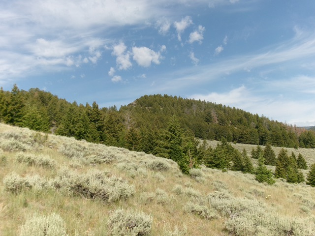 The forested summit hump of Peak 6921 (dead center) as viewed from high on the east ridge. This was my ascent route. Livingston Douglas Photo