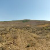 After crossing this flattish section, head left-ish/northeast directly up a face/headwall of steep-ish scrub, dead leafy veg, and some underlying rock. There are some minor open areas on this face section. Once you near the summit crest, cross an easy cattle fence and head right/east to reach the open high point area. There is an old 2-track road just north of this area as the USGS topo map shows. There is thick-ish scrub near the bare high point, both to its south and north. There was no summit cairn so I built a nice one.