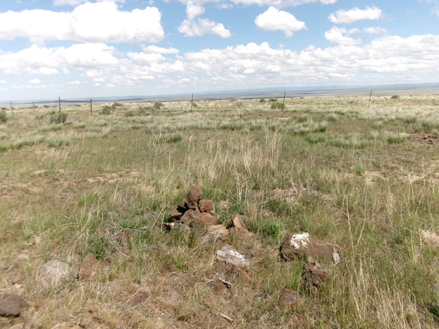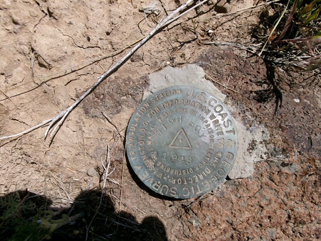 From the improvised parking spot along Coonskin Butte Road, bushwhack northwest through reasonable field grass and sagebrush to reach the summit area. I found the USGS benchmark (“High Boy”) and built a cairn there.
