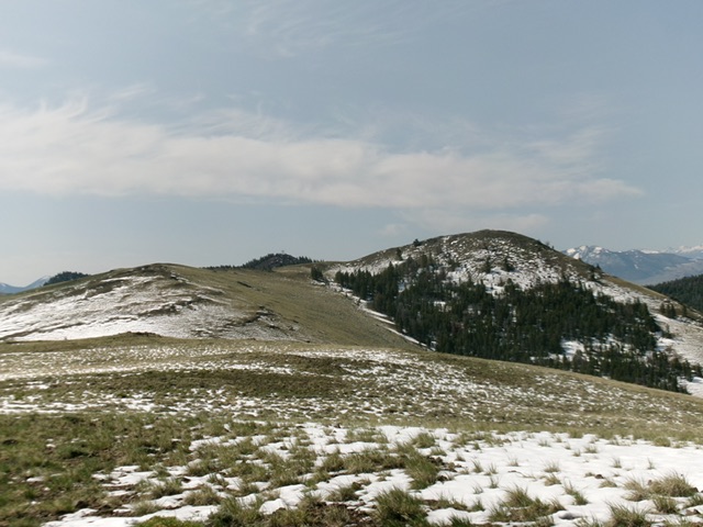 Same as for Peak 8522. Hike (or drive) north on FSR-111 from Peak 8522 all the way to the crest in the road as it skirts the east side of Grouse Peak. There is a cattle gate and a road junction here.