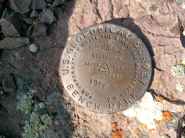 From the road junction, follow an old 2-track road southwest then west to the summit. The concrete footers for the old lookout are still there. The USGS “Grouse 2” benchmark is also there.
