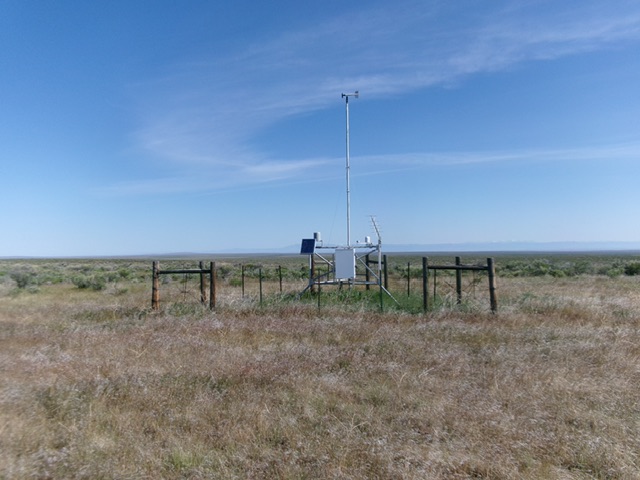 From the improvised parking spot, bushwhack due east through easy field grass and sagebrush to reach the repeater antenna on the bare summit area. The repeater can be seen from the road so aim for it. I could not find a USGS benchmark or a higher point than the repeater.