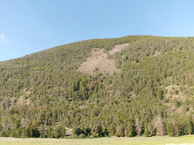 K Mountain earns its name. It has a magnificent “K”-shaped talus/scree field on its northeast side that is quite visible from ID-28 to its northeast. K Mountain is most easily climbed from its north side. USGS Sal Mountain