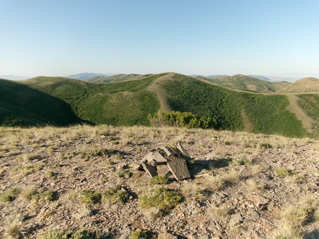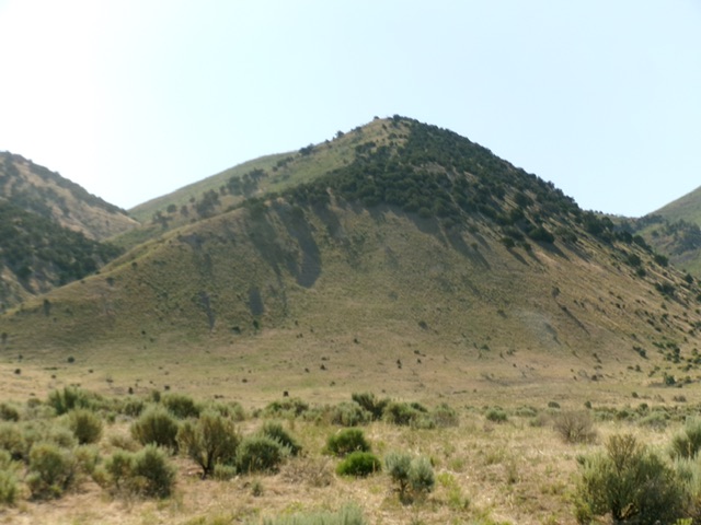 Drive east up FSR-014 for 1.3 miles and park at a gated closure. This is the end of the road [4,917 feet; 42°04’24.4”N, 112°37’49.8”W]. Please note that there is another, unmapped 2-track that continues northeast from here along a fence row. I’m not sure where that 2-track goes. This is the first leg of a 2-peak adventure that includes North Hansel Mountains HP and Peak 6850. It covers 9.0 miles with 3,225 feet of elevation gain round trip.