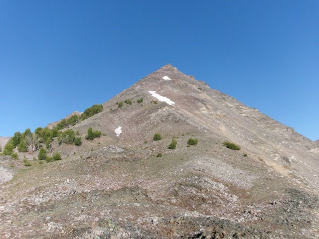 Looking up the upper east ridge from Point 9862. This was the upper leg of my ascent route. The summit is hiding behind the pyramidal-shaped point dead ahead. Livingston Douglas Photo