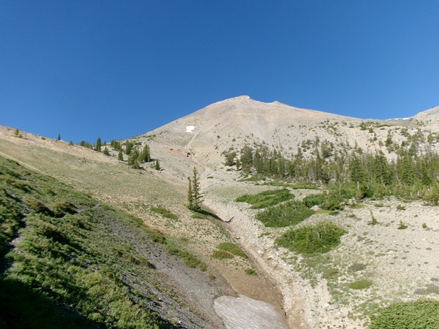 Looking up the steep east ridge from just above the saddle. This was the final leg of my ascent route. Livingston Douglas Photo