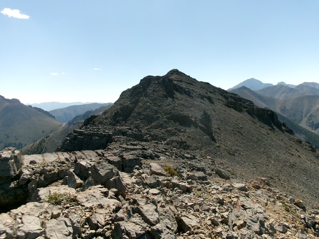 Goats ‘R Us is an unranked ridge hump that is located southeast of The Clapper on a high, rocky ridge in the Lemhi Range. It is most easily climbed via its connecting ridge with The Clapper. USGS Bell Mountain