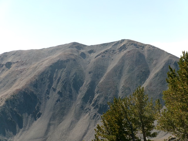 The cairned, northeast summit hump (dead center) as viewed from the official, measured southwest summit. Livingston Douglas Photo