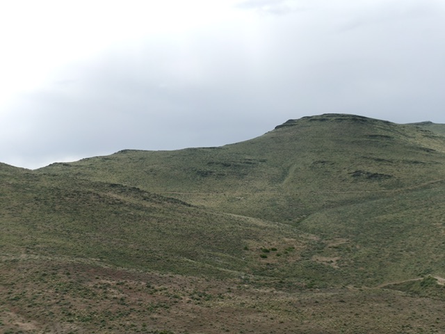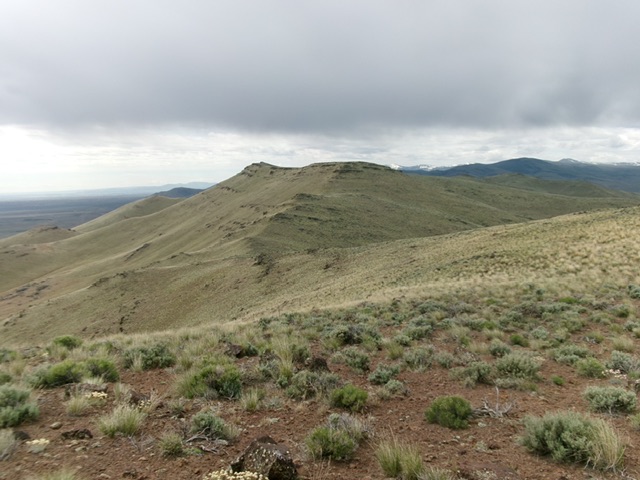 The peak’s long south ridge provides a scenic route to the summit. Access the road from Rabbit Creek Road/Reynolds Stage Road. There is no definitive spot to start the hike as the open terrain lets you climb the peak from any place in the vicinity of where the road crosses the 4,586 pass on the peak’s. The route I took is shown in the map below. There are fences on the ridge. The best option is to stay on the west side of the fence that follows the ridgeline north. You will have to cross over or under fences twice along the way.
