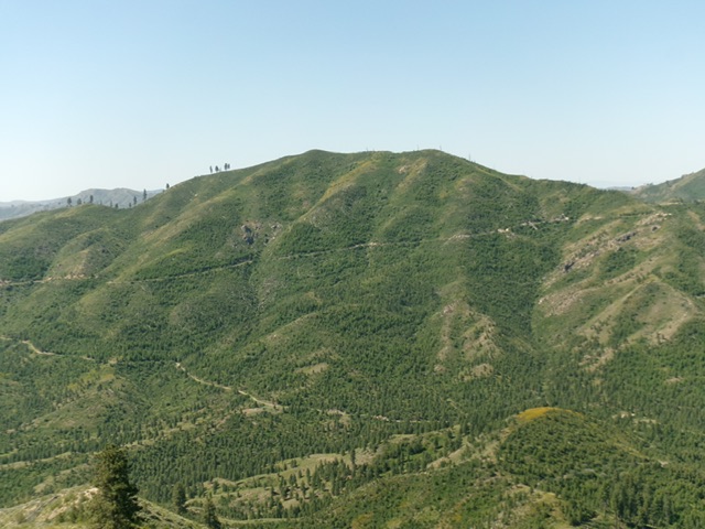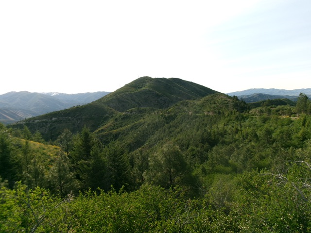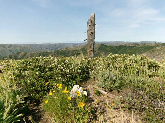 Peak 5587 sits southeast of Grape Mountain and due south of Peak 5424. These 3 peaks surround the Trail Creek drainage. The peak was burned over at some point in the past. The forest is not recovering well but the brush is healthy. The summit has an outstanding view of the South Fork Boise River’s spectacular gorge. The peak is an easy ascent from the road that leads to Grape Mountain. USGS Long Gulch