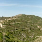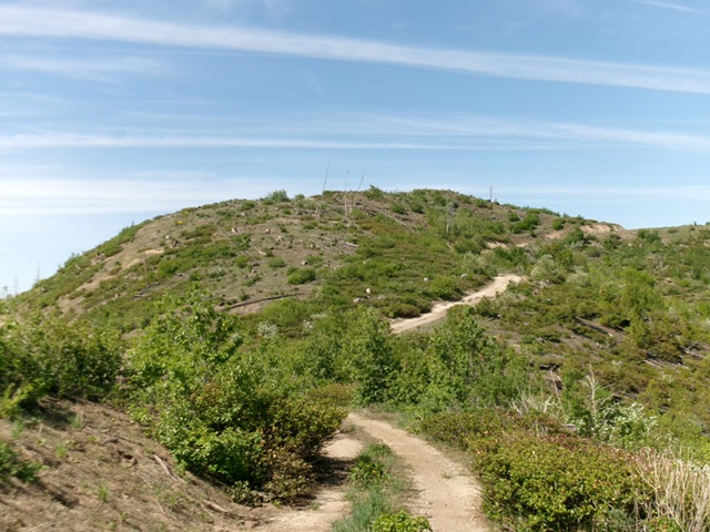 From the gated road closure, hike southwest up the ATV trail (FSR-175A) as it heads up the right/north side of the ridge crest and skirts Point 6080+ entirely. Once past Point 6080+ and at a ridge saddle just north of the high point (and just south of a repeater station), leave the road/trail and scramble left/south up through easy, gapped scrub to reach the first hump (the north/true summit). I continued to the more impressive, but slightly lower, south summit hump. The south summit offers a beautiful view of Prairie, Idaho.