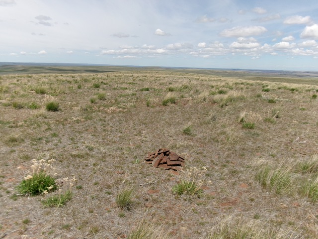 From the narrow gully crossing that is the low point between Bernards Bedground and Peak 6196, bushwhack southwest up the clumpy, gapped field grass on the broad north ridge of Peak 6196. Higher up, head left-ish/south to reach Point 6094. The mostly-bare high point of this ridge hump is obvious and is at (or near) its southwest end. From Point 6094, descend southwest in sagebrush and cross a minor saddle. Continue south up to a false summit hump. From there, head south-southeast to the measured high point of Peak 6196. I built a modest cairn of dinner-plate shale on the summit.