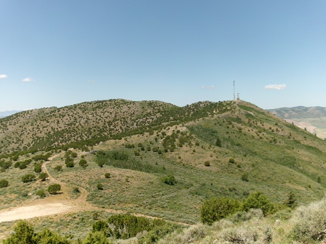 Peak 6760 is a foothill of the Pleasantview Hills that has communication towers on its northeast summit. The southwest summit hump is the high point. The only public access is from the south on a concoction of BLM roads. USGS Buist