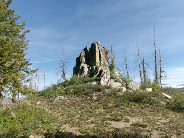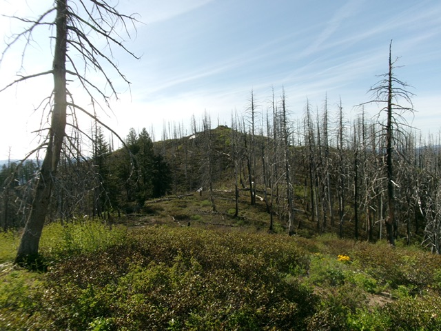 Peak 7025 sits between Burnt Creek and Dry Buck Creek deep in the Boise Mountains. It is most easily reached from a road saddle to its northwest. USGS Trinity Mountain
