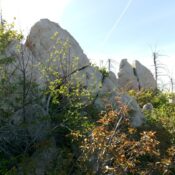 Only the summit tower is Class 3+. From the saddle/pass, find a game trail heading south up through the thick willows to reach the first ridge hump at 6,760+. From this flattish area, continue south-southeast up the ridge in thick-ish scrub that isn’t too bad thanks to lanes and gaps. The ridge soon bends right-ish/southeast and stays on a southeast line all the way to the summit towers. The northwest ridge has a few ups and downs (25 feet and 75 feet) and some willow patches, but you can almost always find a weak game trail to help.