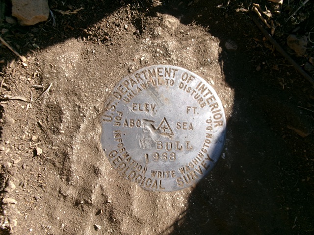 There is a rocky ridge section (a final false summit) just before reaching the high point of Bull Benchmark. The summit has a dilapidated triangulation tripod on the ground and the USGS “Bull” benchmark. I built a summit cairn next to the benchmark. This is a magnificent mountain when you get high enough to see its length and prominence.