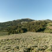 Second, park at a trailhead parking area about 100 yards south of the bridge crossing. An unsigned trail goes from here up over the toe of the northeast spur then drops to the south side of Antelope Creek, where it heads west then southwest up the creek drainage. Third, park up a short side road that leads to a campsite and a trail heading up Horsethief Creek. This side road is about 100 yards south of the trailhead parking area. From the Horsethief Creek Trail, one can scramble west and quickly intercept the northeast spur. This final access point was my chosen option. The end of the side road is at 6,810 feet and 43°37’35.9”N, 113°43’39.4”W.