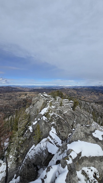 Upon returning home I contacted Derek Percoski and asked him to evaluated the peak using LiDAR data. He determined that “the southernmost tower (43.61990851,-115.41270428) is 2.5′ taller than the one 70′ to the north.”