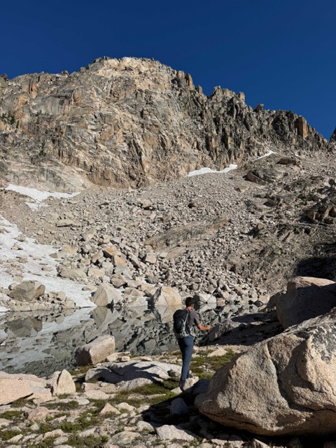 After a few visits to this peak, I successfully climbed the summit pitch with Kaden Platt on 7/8/2025. We were perplexed to find a cairn on the summit but no tat. The filthy southeast face suggests earthquake alterations. So it’s possible part of the summit block fell off in 2020.