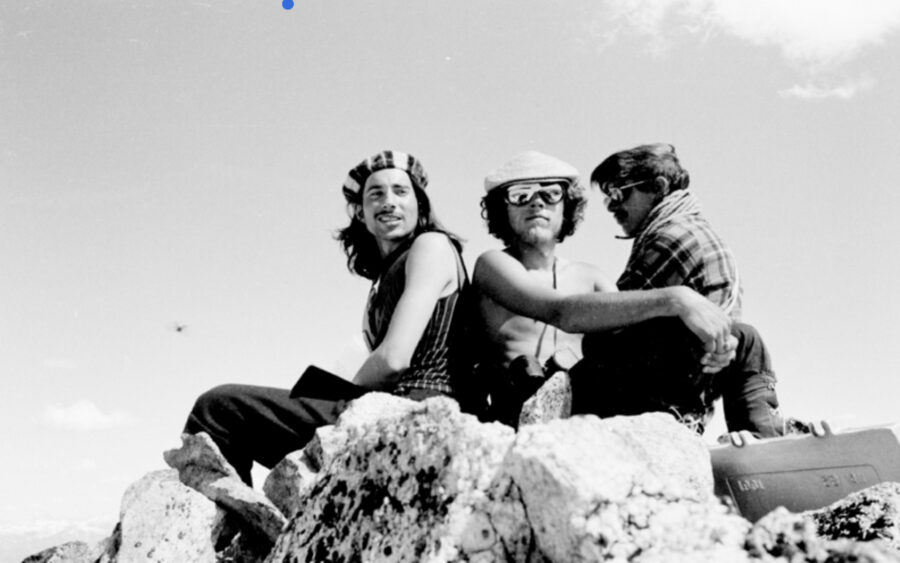 June 1971, my photo of Gordon glissading “way too fast” on our way down from climbing the highest peak in the Sawtooths.